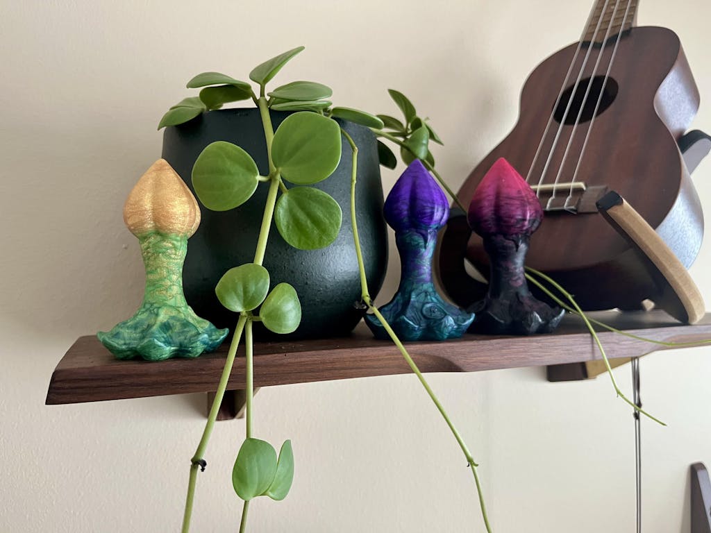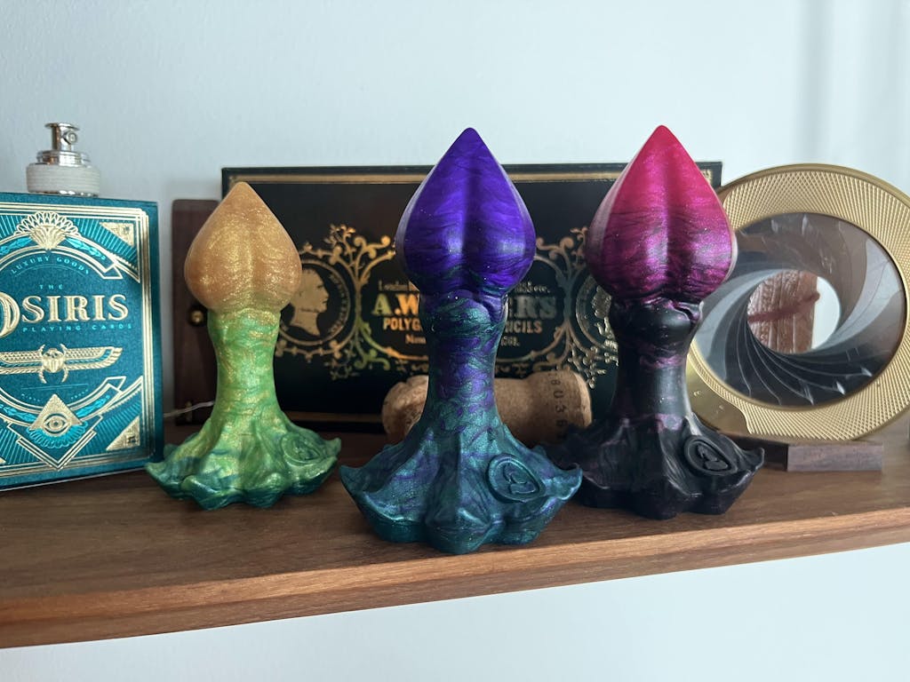 Comme le processus de fabrication est artisanal, chaque daemon a ses propres nuances uniques. Les vagues formées par les nacres dans le silicone de votre daemon seront légèrement différentes du modèle présenté en photo.