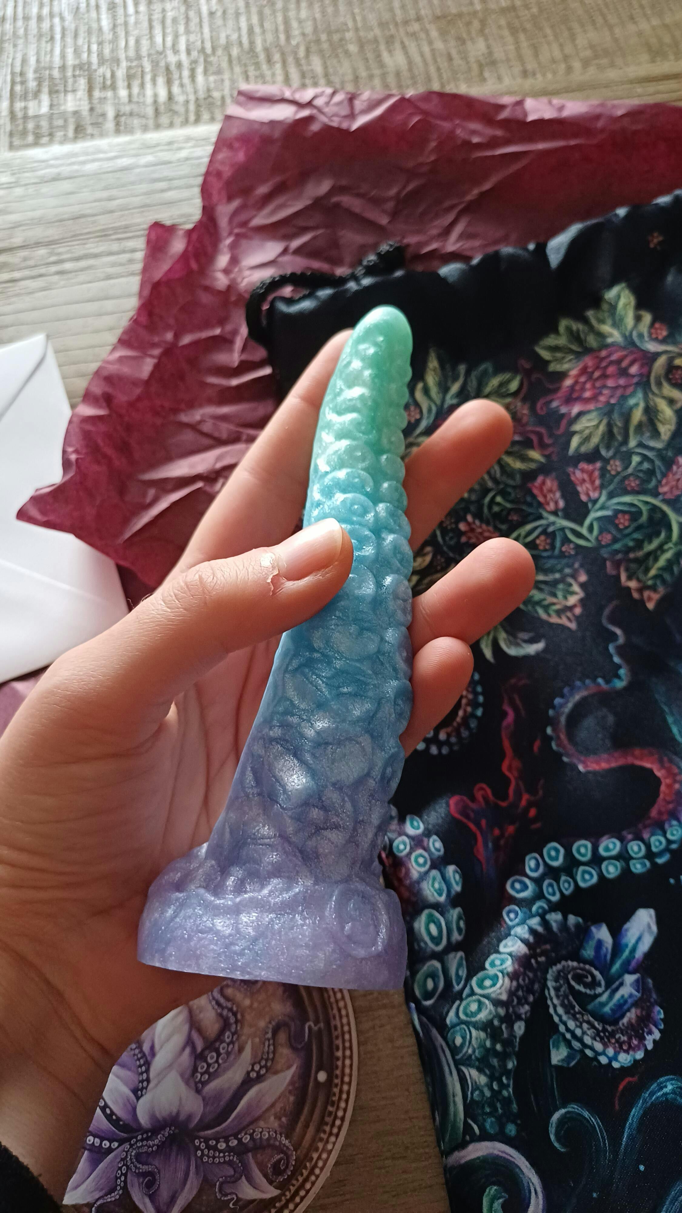 Product is absolutely gorgeous, very high quality feel en silky smooth with lubricant. My only complaint (as a guy at least) the curve makes it a bit hard to ride, especially the beginning part, when you're over halfway you can ride away without the diffucult part of keeping it in / it popping out. The tentacle cups are pretty intense but that's of course personal preference, I'll probably come to like it. Pretty satisfied.